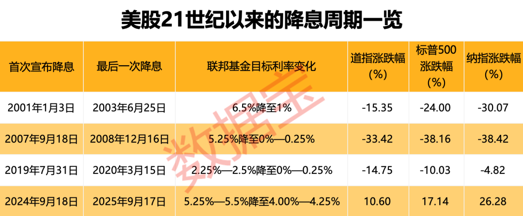 统计显示,2000年以来,美联储共降息32次,宣布降息当日道指、标普500下跌概率较大,32次中下跌次数均为18次;纳指涨跌各半。