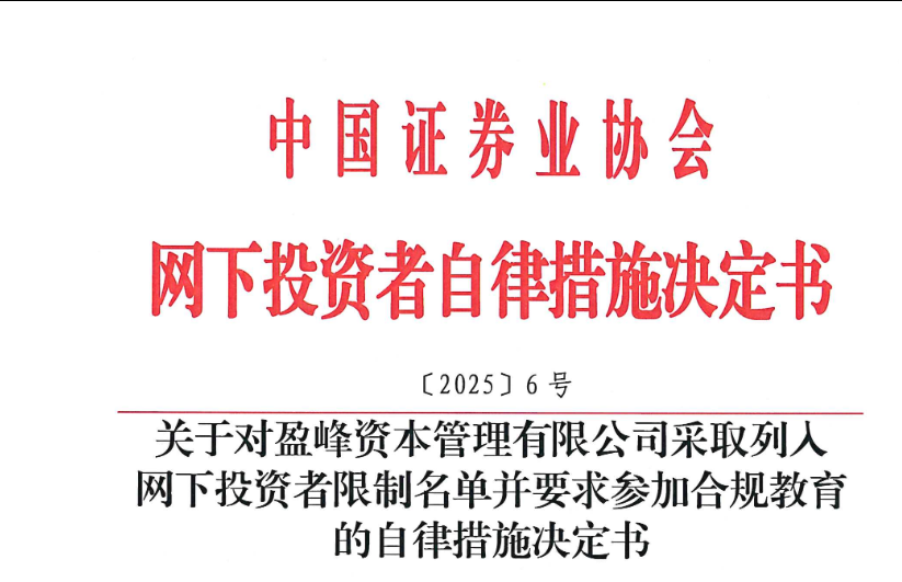 今年4月,中证协官网也发布自律措施决定书称,盈峰资本因在IPO打新时存在未审慎报价、定价依据不充分等违规行为,被限制网下打新6个月,并被要求参加合规。