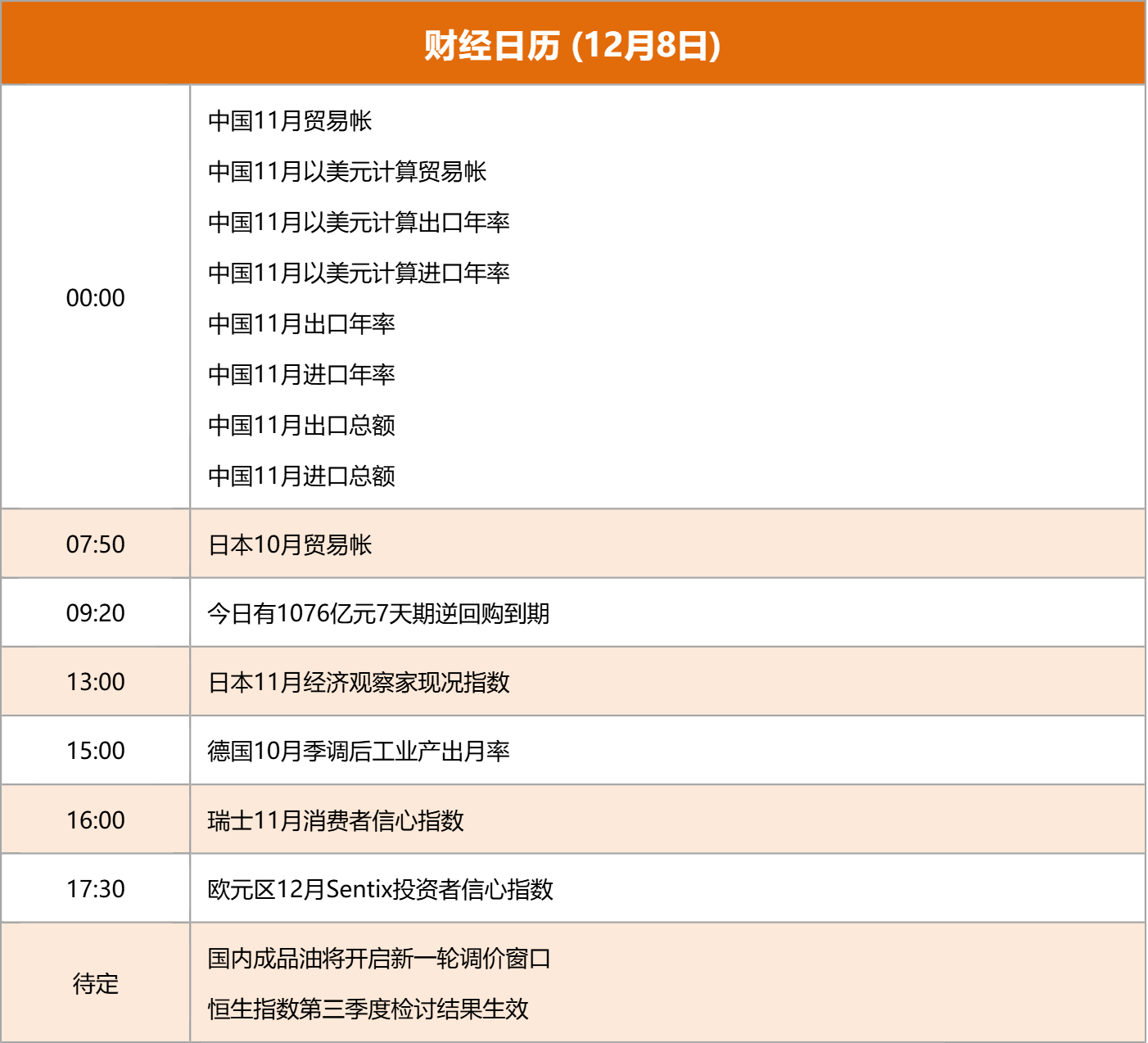 美联储降息:美联储将于周四举行议息会议,美联储主席鲍威尔召开货币政策新闻发布会。据CME“美联储观察”,美联储12月降息25个基点的概率为87%,维持利率不变的概率为13%。