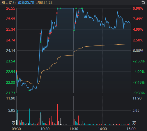 下午开盘后,航天动力的走势开始变得更加刺激——